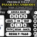 Prediksi Boss Togel Cambodia Kamis 02 Oktober 2025