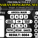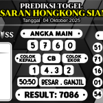 Prediksi Boss Togel HK Siang Sabtu 04 Oktober 2025