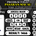 Prediksi Boss Togel Macau Jumat 03 Oktober 2025