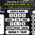 Prediksi Boss Togel Macau Kamis 02 Oktober 2025